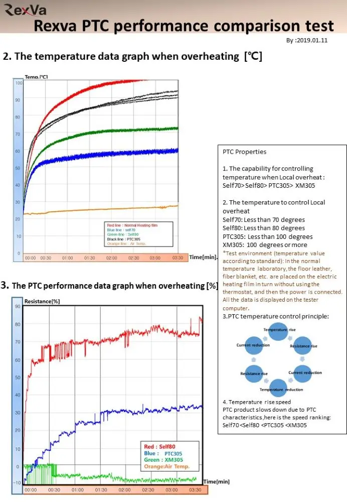 - PTC heating film have a transparent color and it can be regulated by itself , the purpose of PTC product is to reduce the probality of overheating occurrence .