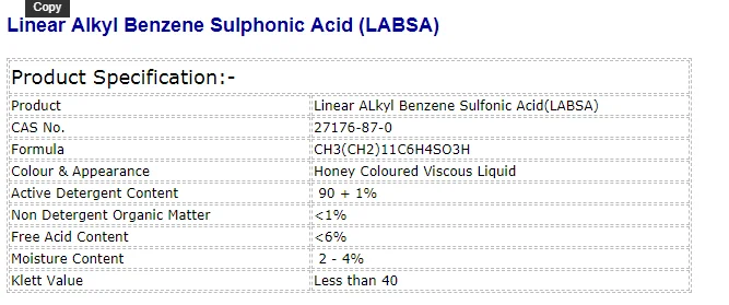 Linear ALkyl Benzene Sulfonic Acid 90% made in india