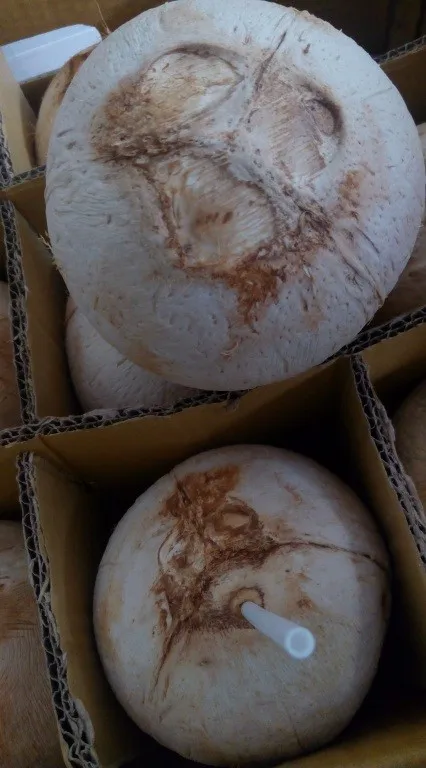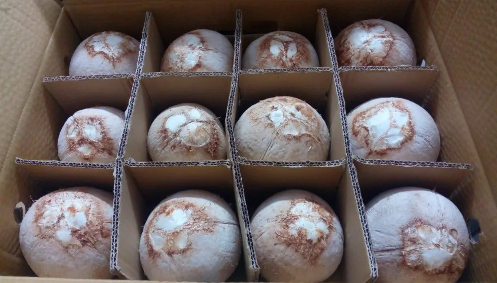 * White coconut produces more water and less meat.