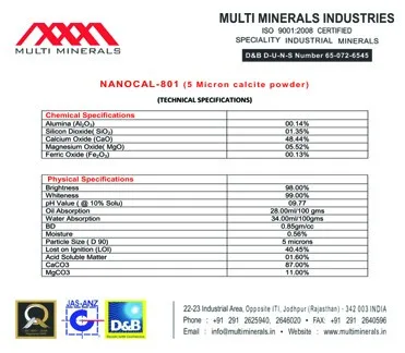 Premium grade 10 micron calcite powder for paint and plastic industries
