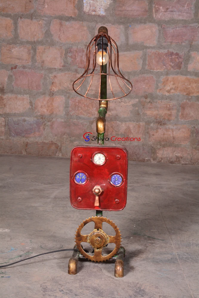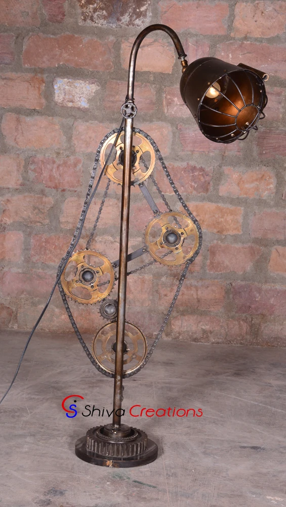 Searching for the perfect vintage floor lamp for lighting your house or hotel? Wholesale unique and handmade industrial vintage floor lamps available at Shiva Creations, manufacturer of industrial and vintage furniture from Jodhpur India. Industrial rustic handmade vintage floor lamps adds charm to the rooms of your home, hotel, restaurant or bar. Floor Lamps are not like those ordinary lamps that are used for your bedtime reading. With an antique metal finish, these vintage metal floor lamps have unique look that will shine bright in any room whether it's your house or office or hotel or bar. High quality, beauty and function are powerful influences of our antique floor lamps. There are many kinds of industrial floor lamps such as torchiere, two light, curved arm, swing arm, etc. Shop floor lamps and other industrial, retro and vintage lamps and lighting from our best furniture store.