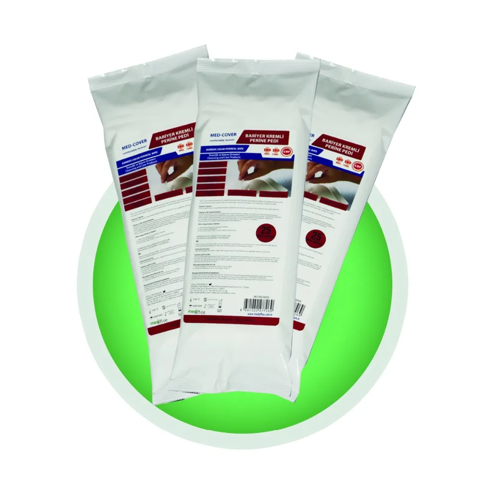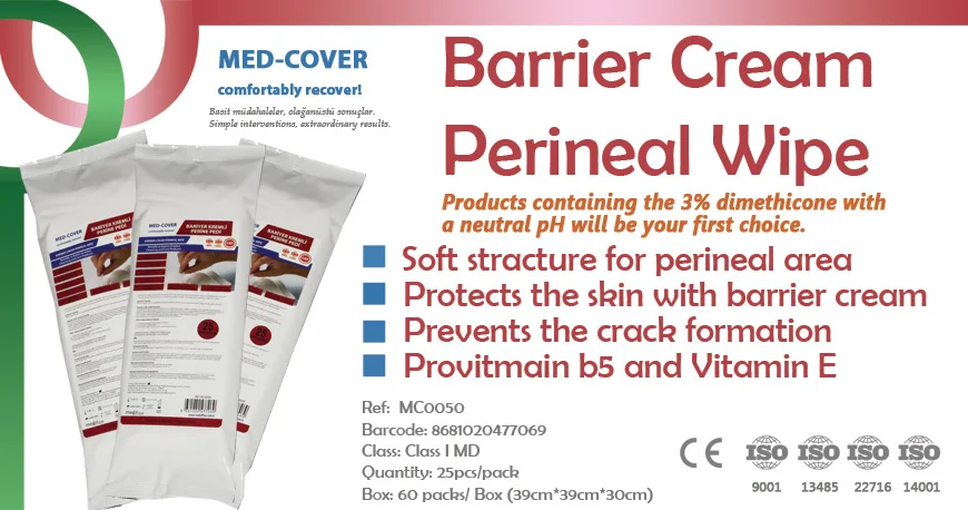 MED-COVER Perineal Wipe takes up the role of degraded natural barrier layer with 3% Dimethicone in the content.This layer provides the breathability and block transmission of liquid.
