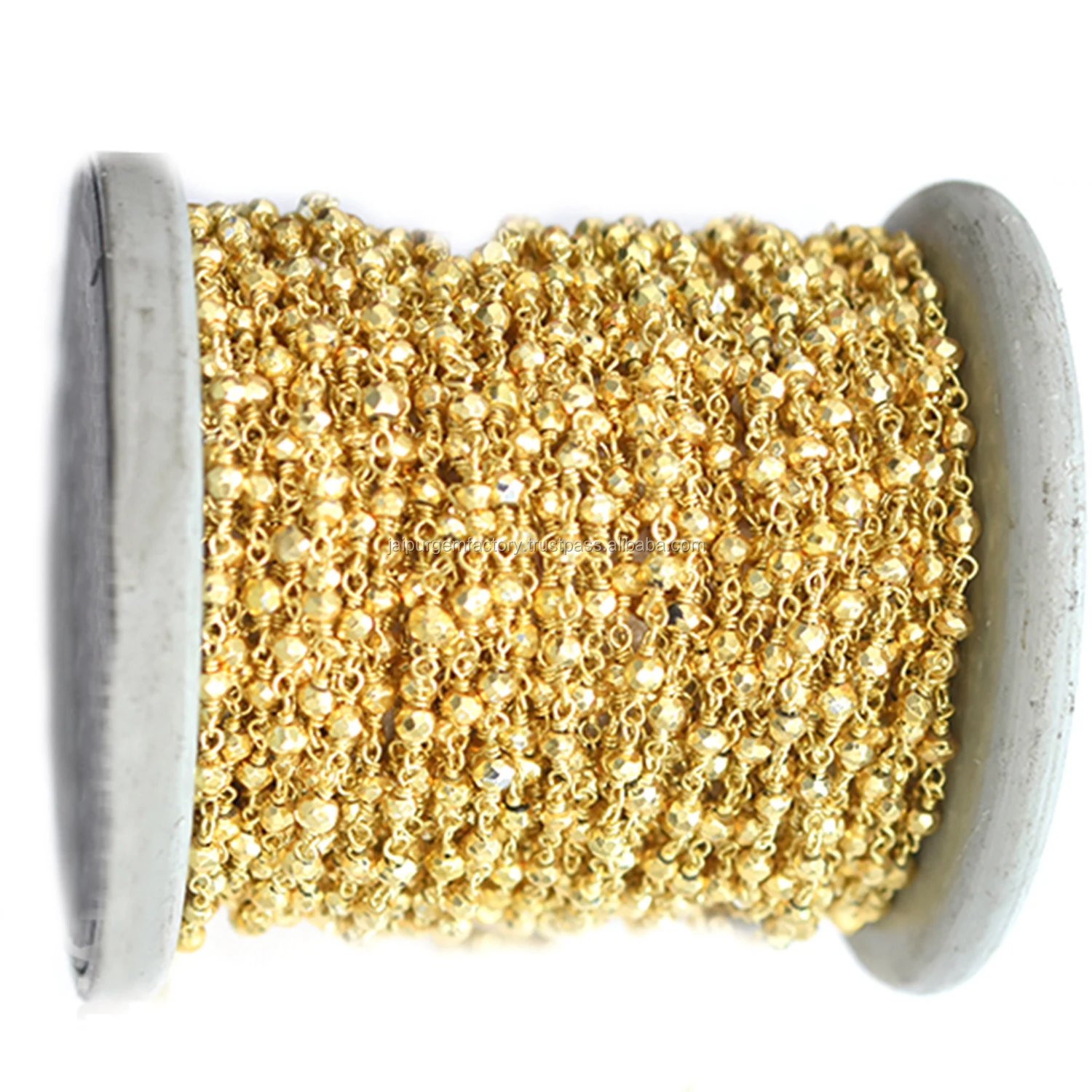 Pyrite Rondelle Shape Sterling Silver Gold Plated Rosary Wire Wrap Chain