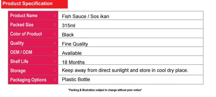 Fish Sauce is a highly preferred condiment and seasoning not only for Thai households, but also for the whole world. You can use it to season your dishes or as a dipping sauce for fried, steamed, boiled, roasted foods or snacks.