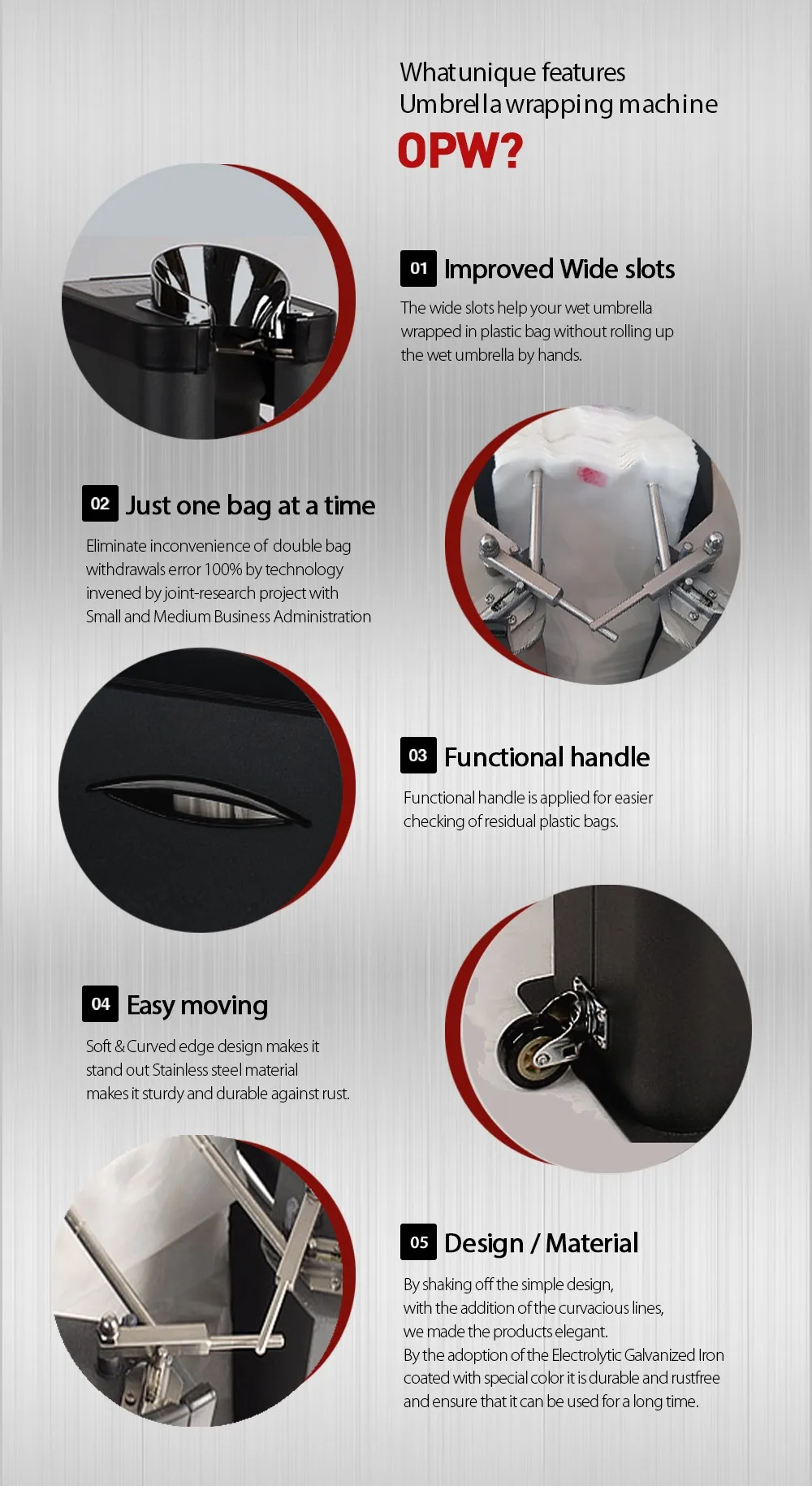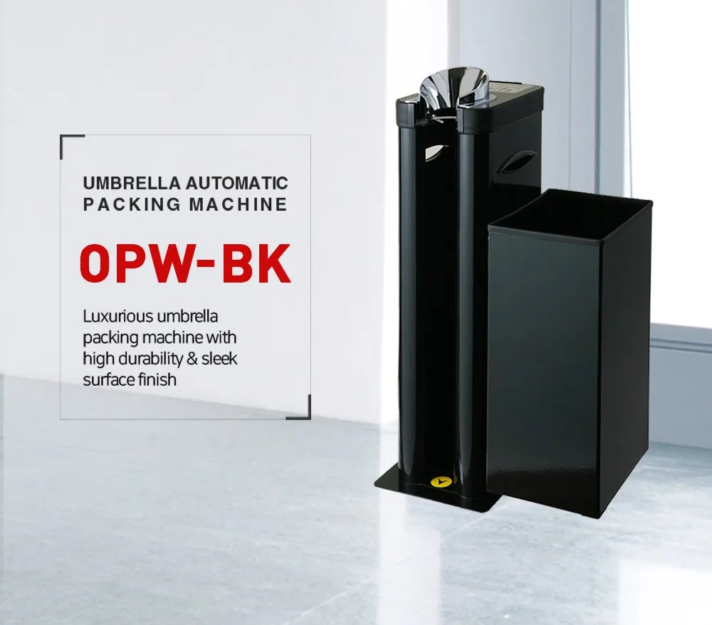 (OPW BK) Black Color Coated and Gorgeous designed Wet Umbrella Wrapping Machine with Litter Bin Made in Korea