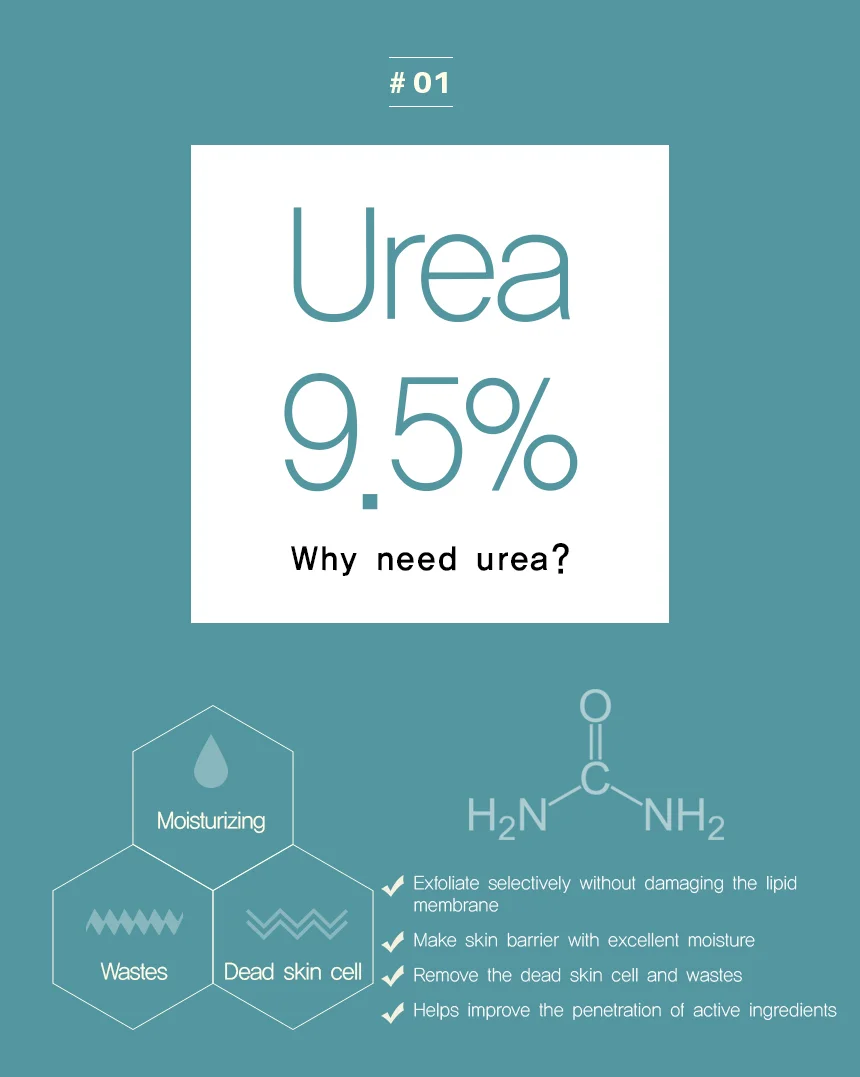 High content of urea 9.5% for removal of the oldest dead skin cells