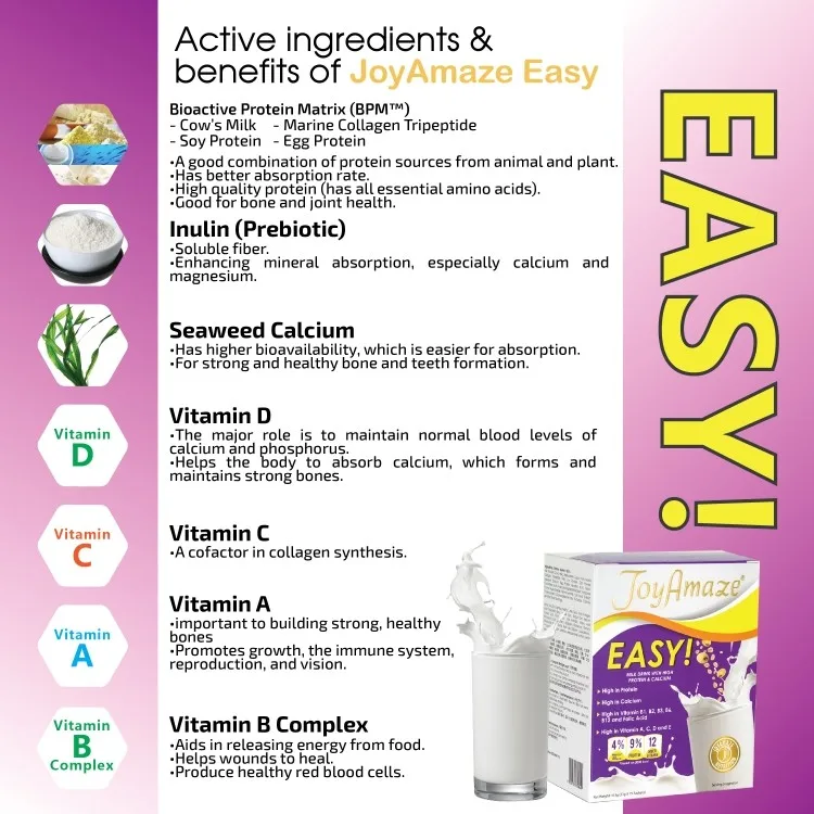 Here's how to get a leg up on joint pain, introducing milk protein drink enriched with calcium. It contains high protein & calcium and scientifically produced to improve bone and joint health and as well as prevention for bone and joint pain in the future.