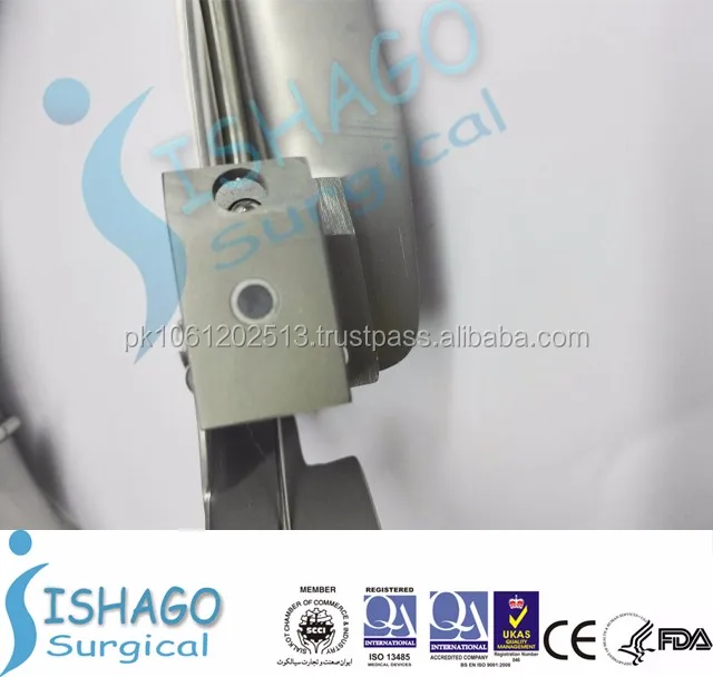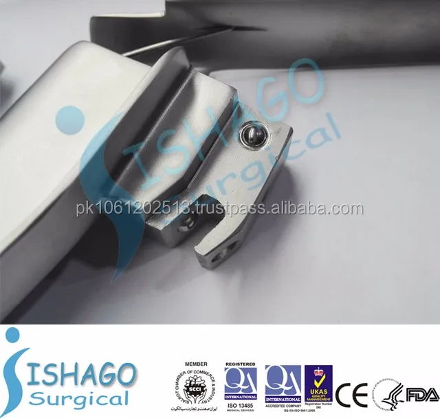 The Flexible Tip blade is a Macintosh laryngoscope blade with a tip which is adjustable through 70°. A lever controls the tip angle during intubation to lift the epiglottis, giving a clear view of the vocal cords. Contact with the upper row of teeth and unnecessary pressure on the tongue and soft tissue are avoided.