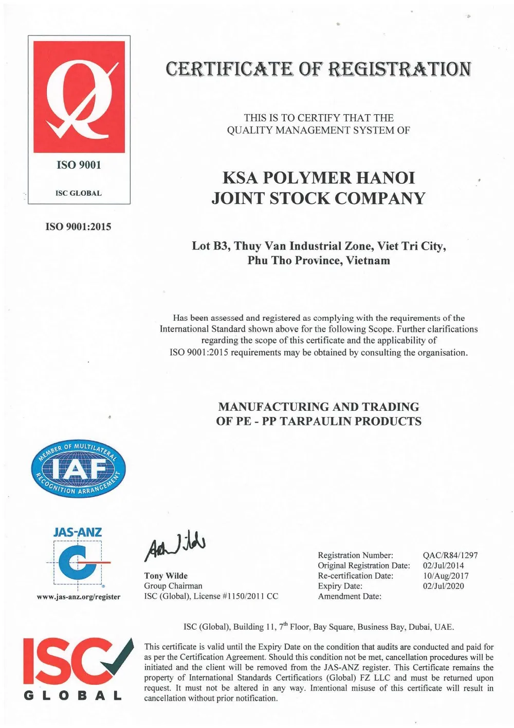 - Korean leading manufacturer of woven polyethylene fabric and end products in Vietnam.