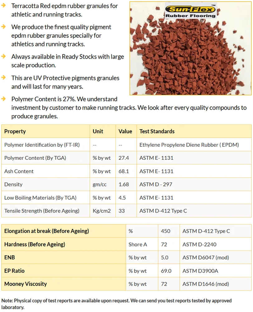 Sunflex Rubber Tiles are ASTM and EN standard approved with worlds best laboratory test reports.