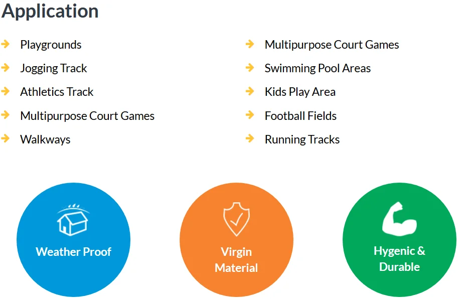 To ensure the good quality we have also setup our own epdm rubber granules manufacturing unit that is used for poured places and rubber flooring.