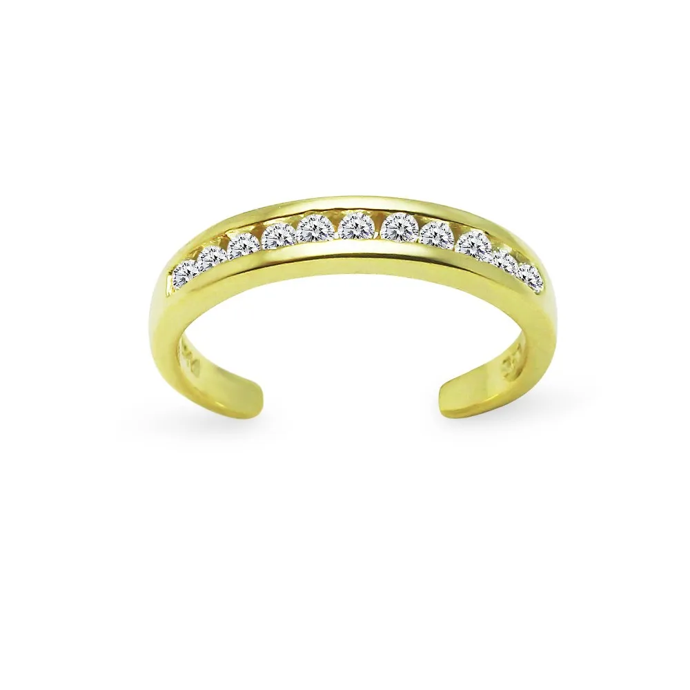 This chic, dainty toe ring features sparkling clear CZ cubic zirconia channel-set in solid 925 sterling silver. The ring has an open band design, allowing you to adjust its size for the right fit. They are a must-have for any jewelry collections.