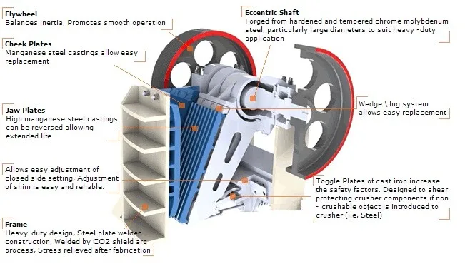 Large flywheels to ensure the inertia is maintained to crush even the hardest materials.