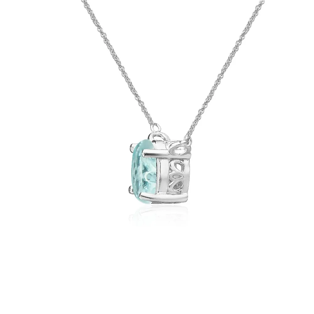 This jewelry for women and teens girls displays a choker necklace. It features a oval cut Sky Blue Topaz gemstone that is prong set in polished sterling silver. This Sky Blue Topaz necklace enhances your daytime and evening attire. Add this to your trendy jewelry, sterling silver jewelry, sky blue topaz jewelry or gemstone jewelry collections. It can be purchased as gifts for women and teen girls. The choker is crafted of fine sterling silver and is nickel free. The necklace secures with a spring-ring clasp and measures 13 inches long plus a 3 inch extender.