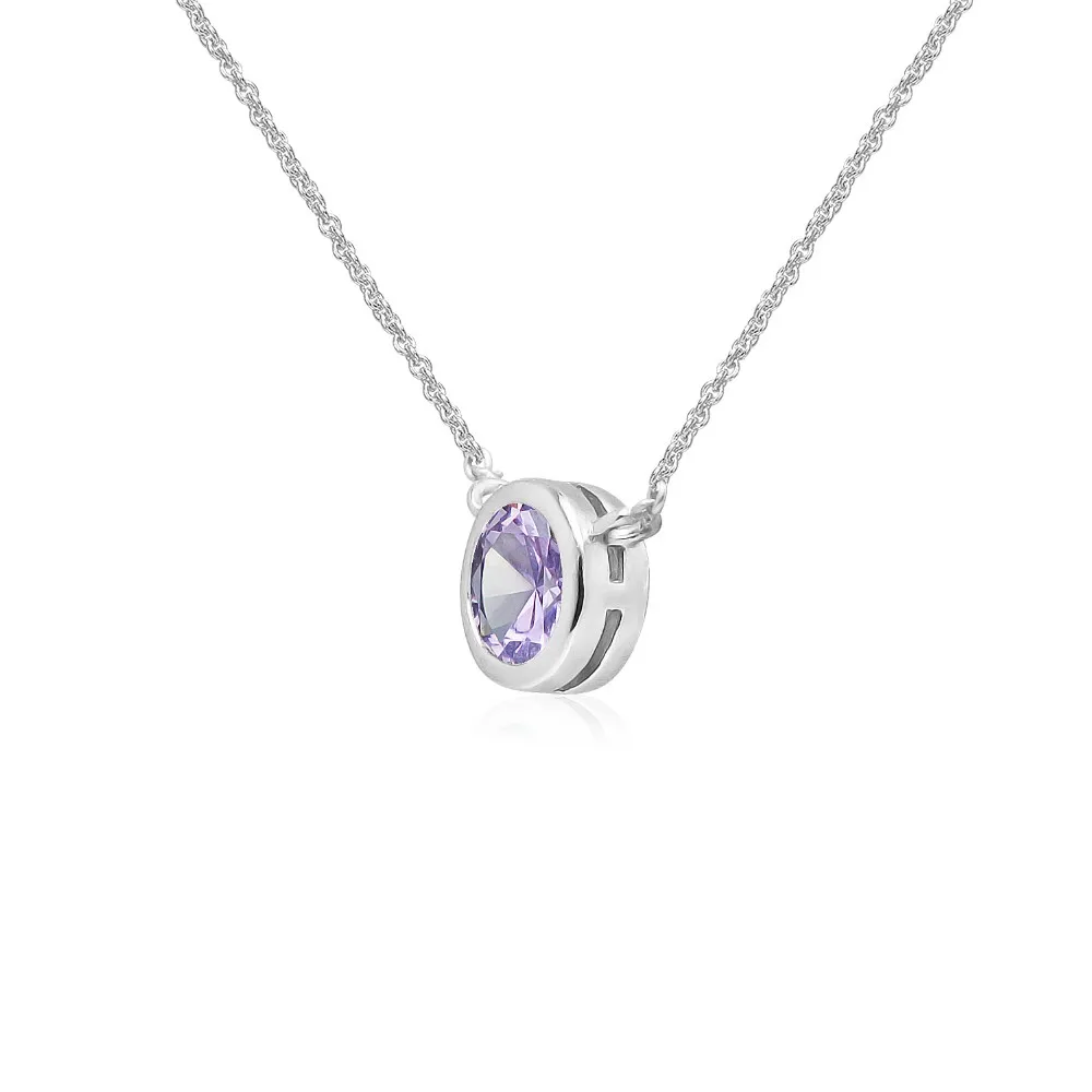 This choker displays a trendy bezel set solitaire amethyst gemstone. This amethyst necklace enhances your daytime and evening attire; add it to your sterling silver jewelry, amethyst jewelry or gemstone jewelry collections. It can be purchased as necklaces for women or necklace s for teen girls.This solitaire necklace is crafted of fine sterling silver; its nickel free tarnish free. The necklace measures 13 inches in length plus a 3 inch extender and secures with a spring-ring clasp.