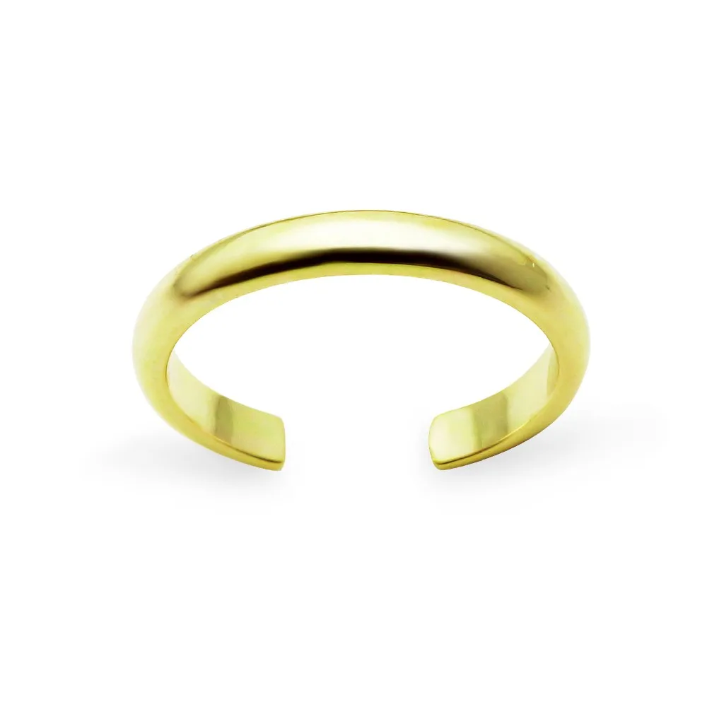 Yellow Gold Flashed Sterling Silver High Polished Plain Simple Adjustable Toe Ring