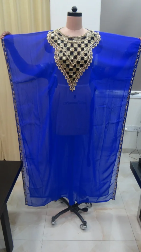 We would like to introduce our company D.E.Corp as the largest manufacturer and exporter of fashion garment like KAFTAN. morrocan takchitas, crystal patches for European gowns, digital print kaftan, beach coverups, salwar kameez, anarkali churidar