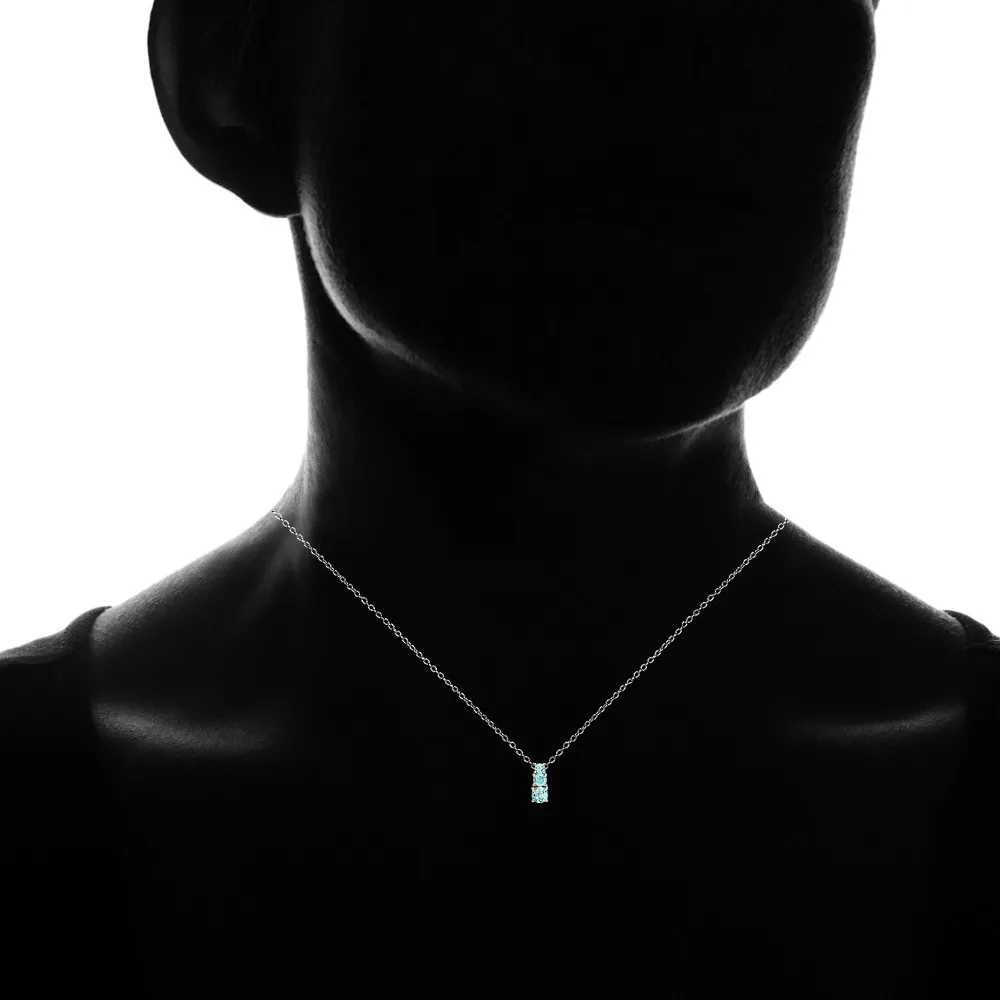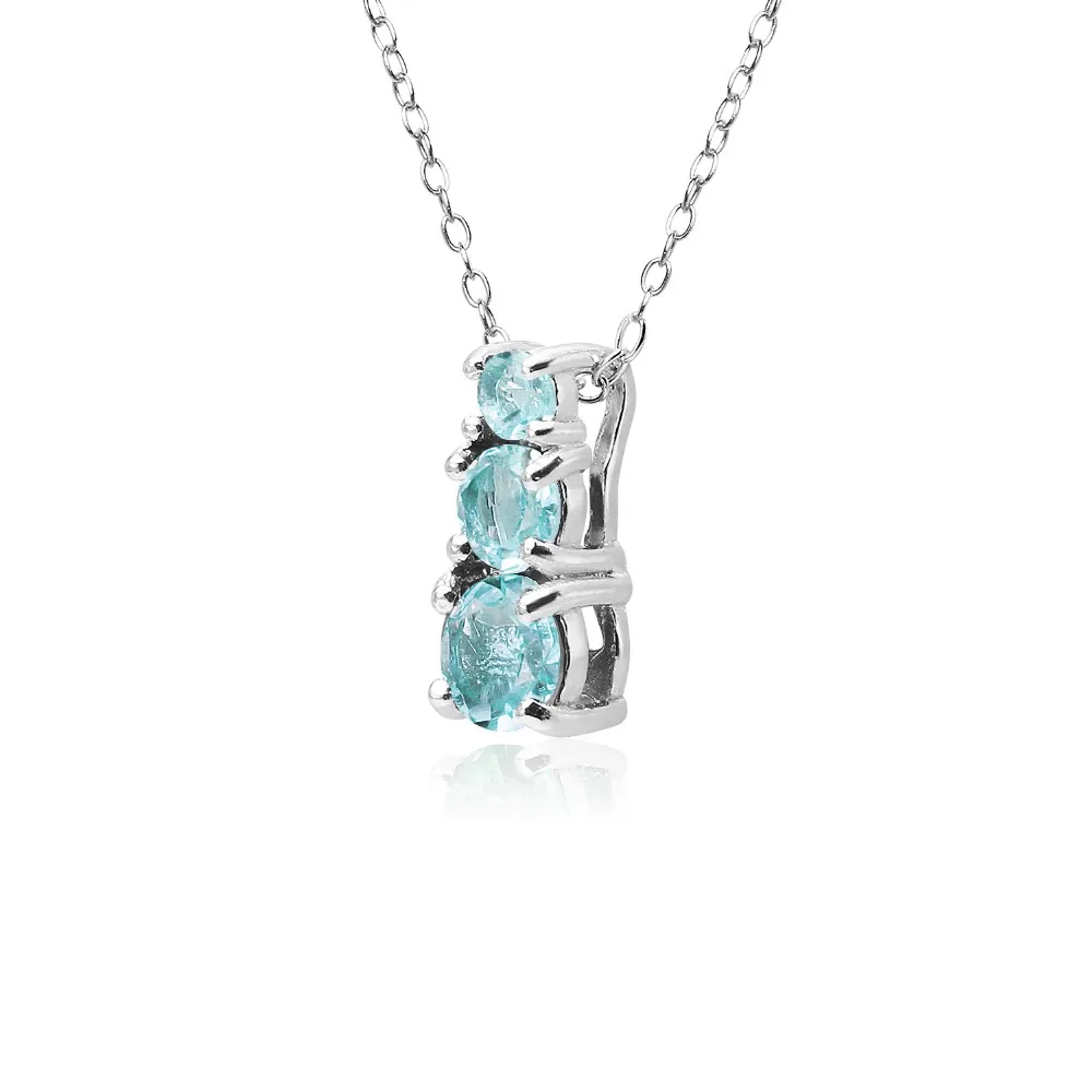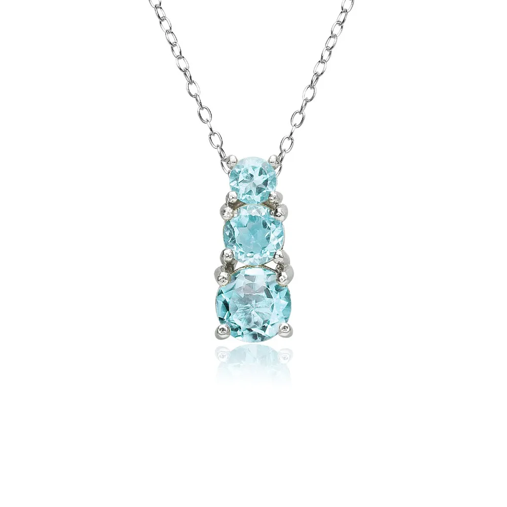 FEATURE - This beautiful pendant necklace for women features three vertical blue topaz gemstones in a graduating journey design, for a fashionable look.