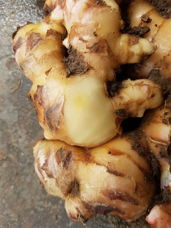 Ginger is a herbaceous perennial which grows annual pseudostems (false stems made of the rolled bases of leaves) about a meter tall bearing narrow leaf blades. The inflorescences bear pale yellow with purple flowers and arise directly from the rhizome on separate shoots Ginger is in the family Zingiberaceae, to which also belong turmeric (Curcuma longa), cardamom (Elettaria cardamomum), and galangal. Ginger originated in the tropical rainforests from the Indian subcontinent to Southern Asia where ginger plants show considerable genetic variation.[As one of the first spices exported from the Orient, ginger arrived in Europe during the spice trade, and was used by ancient Greeks and Romans. The distantly related dicots in the genus Asarum are commonly called wild ginger because of their similar taste.