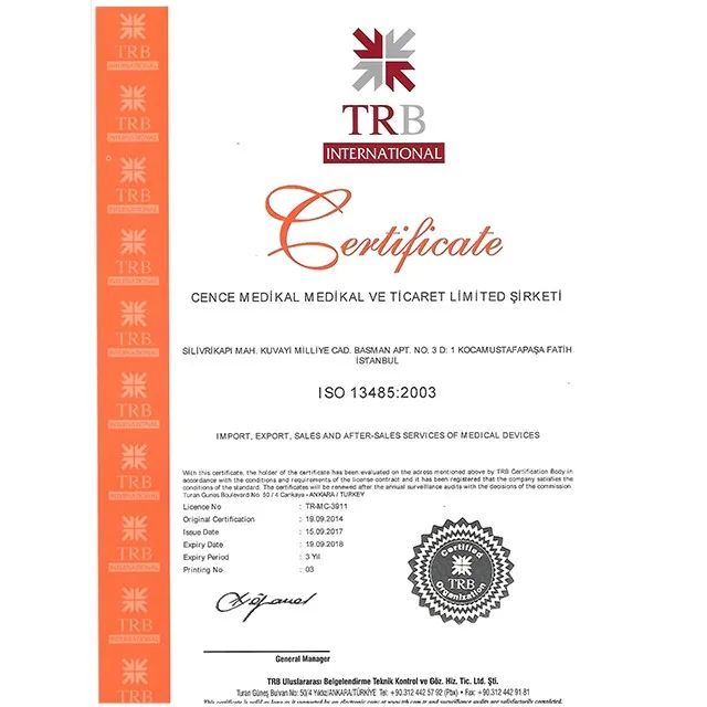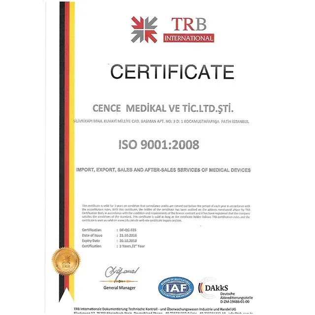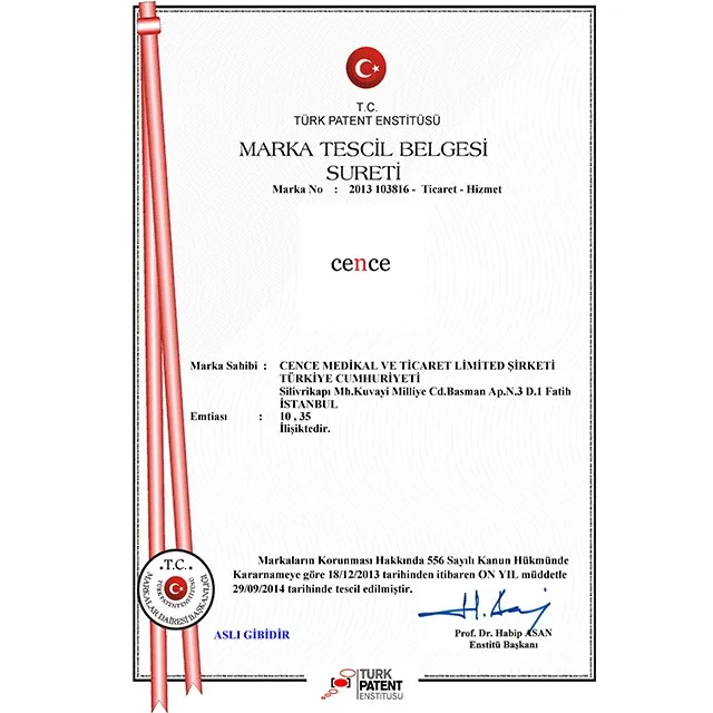 Cence Medikal proves its quality by the certificates, ISO 9001:2008 and ISO 13485:2003. Despite its newly presence in the field, Cence Medikal has been increasing its customers portfolio in Turkey, Middle East and Europe.