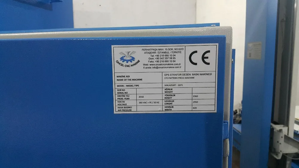 EPS STYROFOAM DESIGN PRINTING MACHINE is used at facade in the production of decorative sawn timber, stone appearance, broken brick pattern, etc. We obtain these patterns by pressing the heated mold at high pressure on the product.
