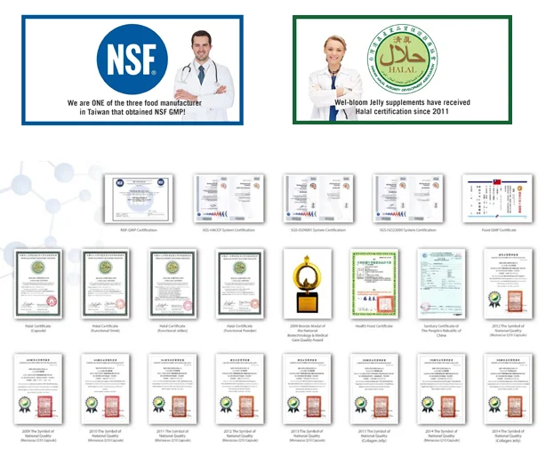 A pharmaceutical level of production unit and a standard operating procedure are the foundations of our production lines. Wel-Bloom's facilities have been certified with SGS ISO 9001,SGS ISO 22000,SGS HACCP,NSF Dietary Supplement GMP to ensure our production team meets the highest quality in food safety.