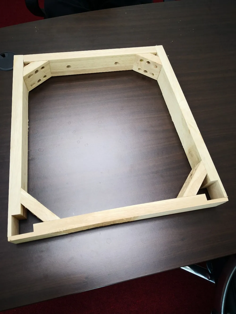 Unfinished with complete with screw holes