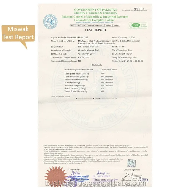 3- Provide bacteria free verification/lab test report from PCSIR.
