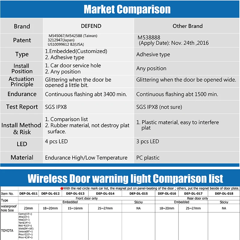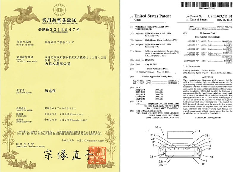 DEFEND Group Co., Ltd. is a professional manufacturer of car gearshift lock which was established in 2003 in Kaohsiung. Now following the marketing development that we not only produce gearshift lock but also design many kinds of products in anti-theft and safety warning system, such as electromechanical gearshift lock, steering wheel lock, car steering shift lock, hood lock, tire lock, motorcycle lock, solar LED parking warning light, solar screw-type warning light, 4 in 1 warning light, emergency brake system, wireless warning light, flashing rescue vest, etc. We obtain the patent and copyright for products, meanwhile, become the main supplier of automakers and the best choice for the consumer.