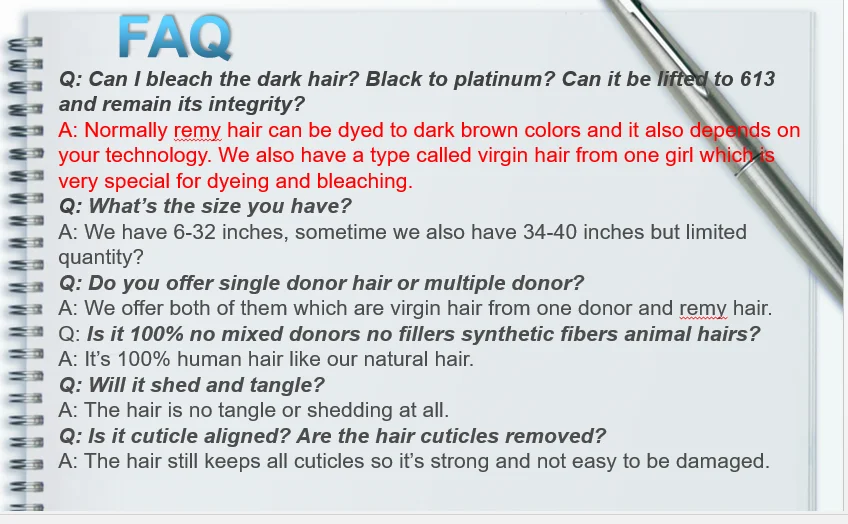 We can do in any colors: black, brown, blonde