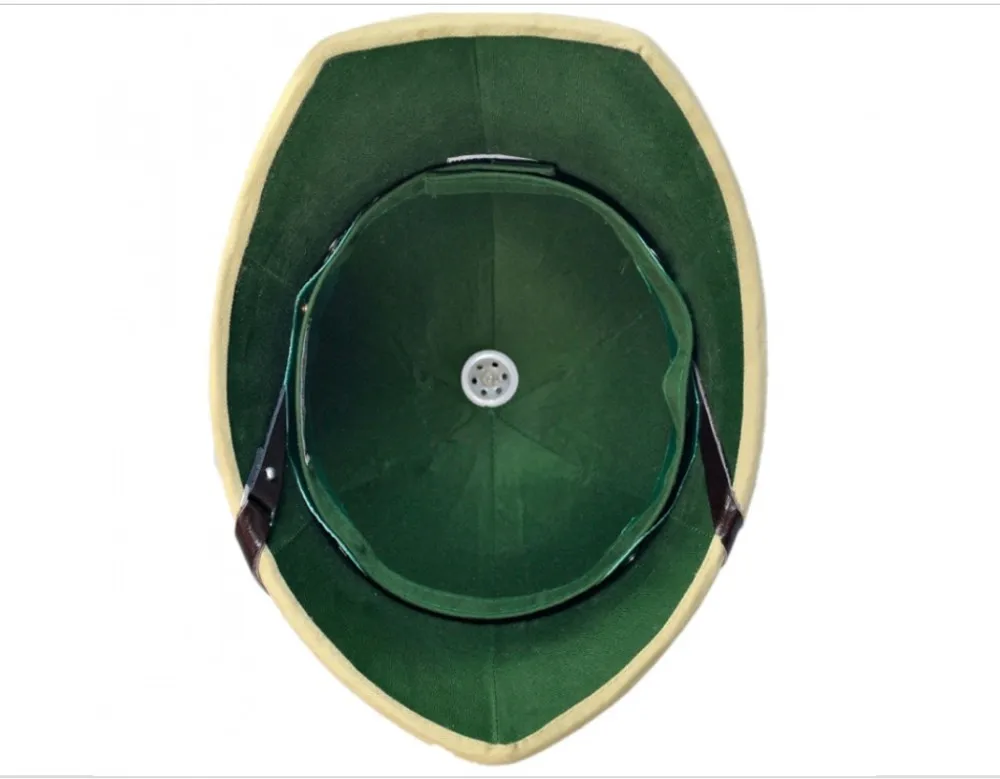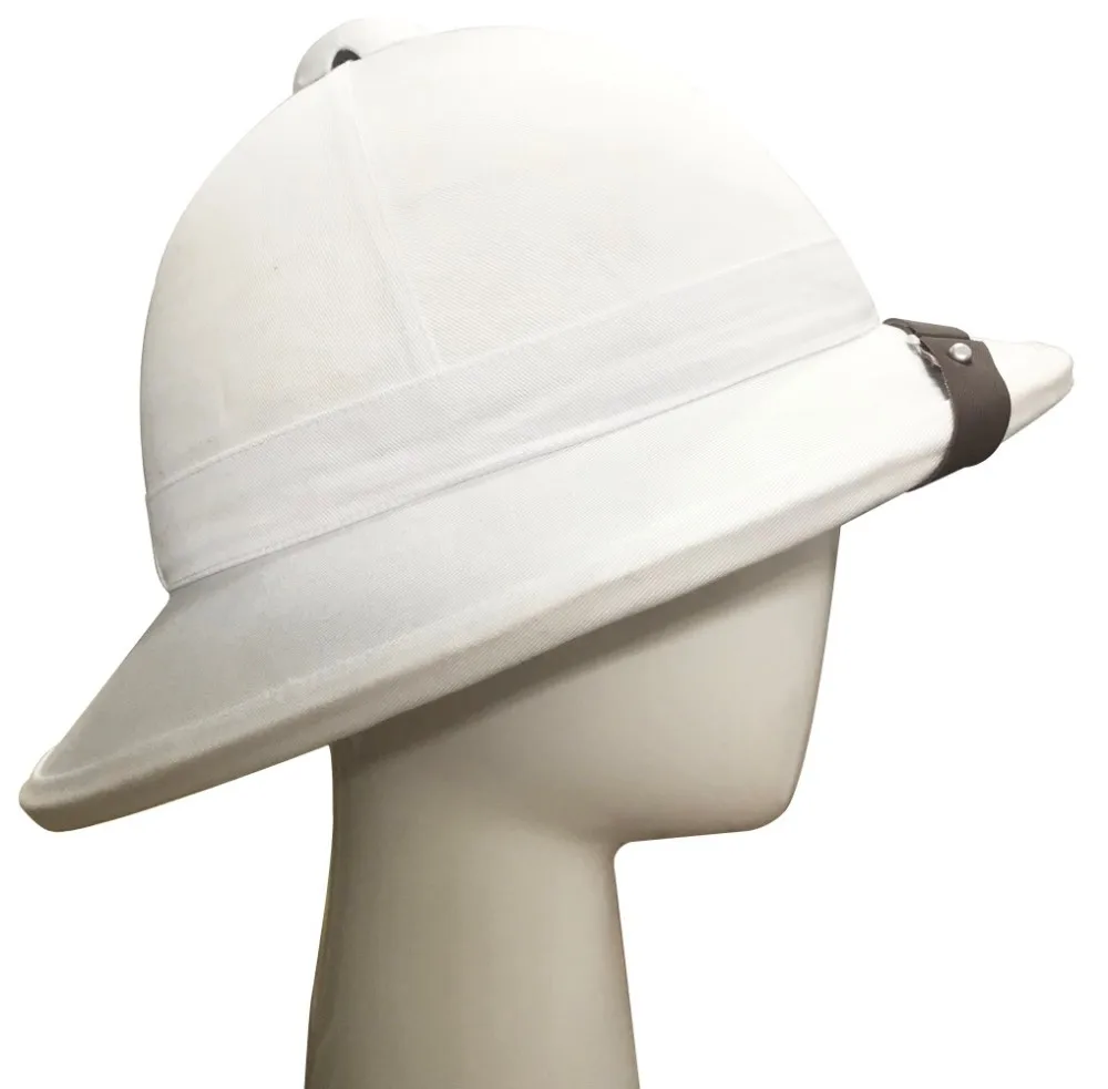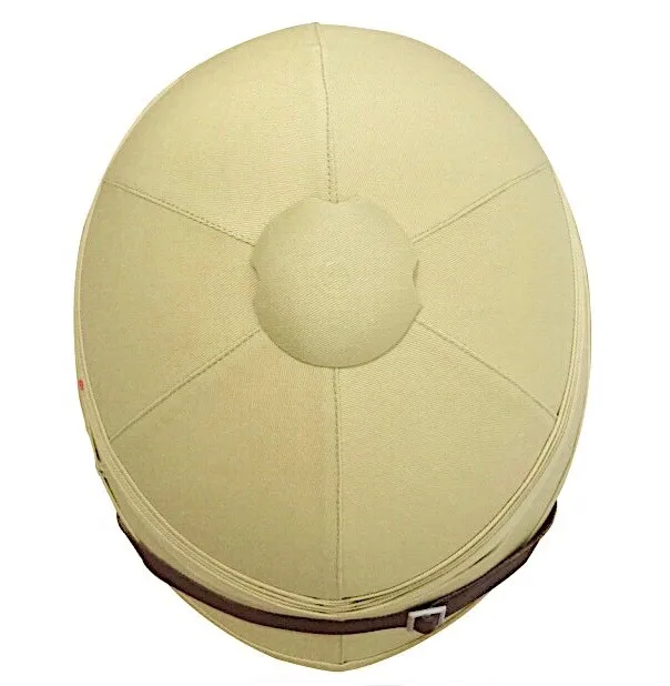 This pith helmet style (also known as UK Pith Helmet)is associated with British colonial and foreign service history.