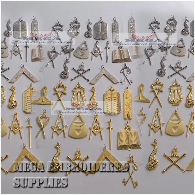Jewels for USA regalia Lodges, AASR Scottish rite regalia, English Constitutions, and French rite regalia