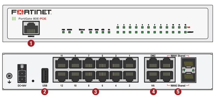 1. Console Port | 4. 2x GE RJ45 DMZ/HA Ports | |