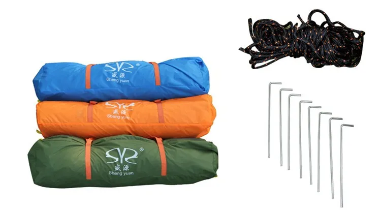 Fabric: | Flysheet:210T ripstop fabric with PU coating Water resistant 3000mm Inner tent: 210T ripstop fabric with PU coating Water resistant 3000mm Flooring:210D Oxford cloth Water resistant 3000mm | |