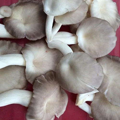 Oyster mushrooms are 100% vegetarian and the nutritive value of oyster mushroom is as good as other edible mushrooms like white button mushroom, shiitake, or paddy straw mushroom. They are rich in vitamin - C and B complex. Protein content varies between 1.6 to 2.5%. It has most of the mineral salts required by the human body such as potassium, sodium, phosphorus, iron and calcium. The niacin content is about ten times higher than any other vegetables. A polycyclic aromatic compound pleurotin has been isolated from P.griseus which possess antibiotic properties.