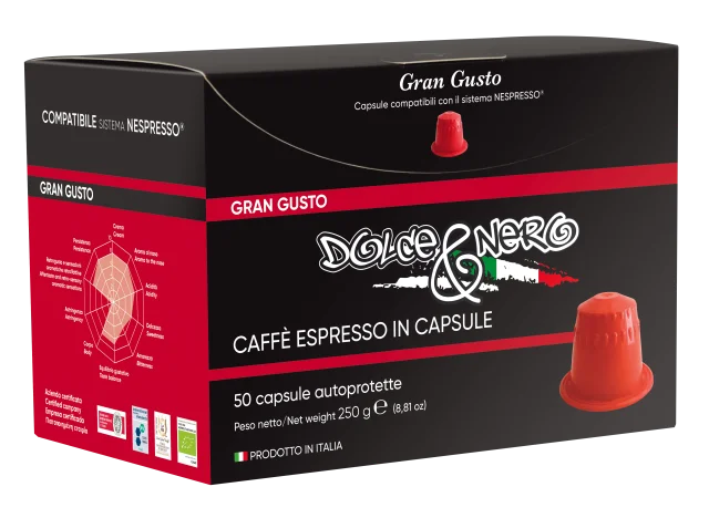 "Dolce & Nero" GRAN CREMA - Strong and creamy blend for those who prefer a firm and decided taste. Without compromises, this coffee is for those who love strong and energetic flavors.