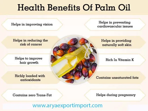 Palm oil is obtained from the fruit of the oil palm tree. Palm oil is used for preventing vitamin A deficiency, cancer, brain disease, aging; and treating malaria, high blood pressure, high cholesterol, and cyanide poisoning. Palm oil is used for weight loss and increasing the body's metabolism.
