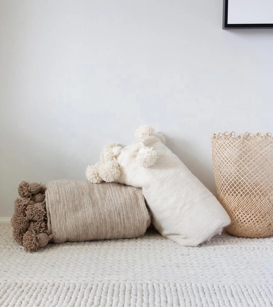 Style Tip: The Moroccan wool blankets with pom poms can be used as a bed covering, folded at the base of a bed or draped over a piece of furniture to inject a sense of global style into any space.
