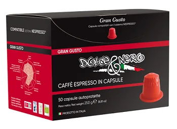 "Dolce & Nero" GRAN GUSTO - This is a "proud" blend capable to seduce the most coffee expert tasters demands, with a citrus and floral aftertaste, like a note of chocolate that is persistence in the mouth accompanied by a right creamy consistency. Ideal in the cup, excellent for a refined preparations.