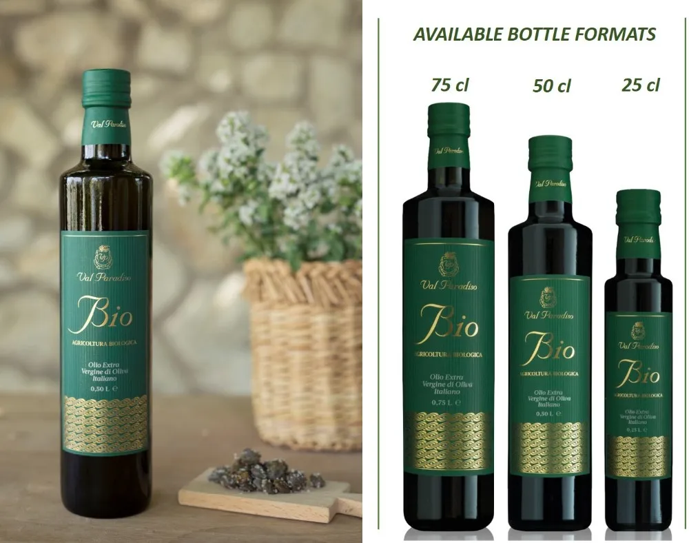Delicate fragrance of green olives, herbs and hints of field, balance between sweet, bitter and spicy, typical of the Sicilian Biancolilla.