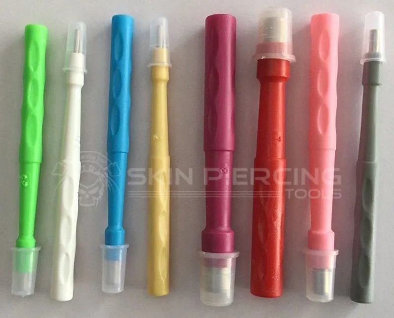 These devices, constructed from 403L stainless steel, consist of extremely sharp cutting edges. The punch has the capability to quickly cut, retrieve and store different types of tissue samples. One of the most important features of this device is that they are sterile and disposable. This allows the user to perform the biopsy effortlessly, and not worry about contamination before or after use. At Skin Piercing, we provide various biopsy punch sizes. These can range from 0.30 mm to 10 mm. We also offer the punches in a variety of colors. These can include white, green, yellow, orange, fluorescent, and celadon.
