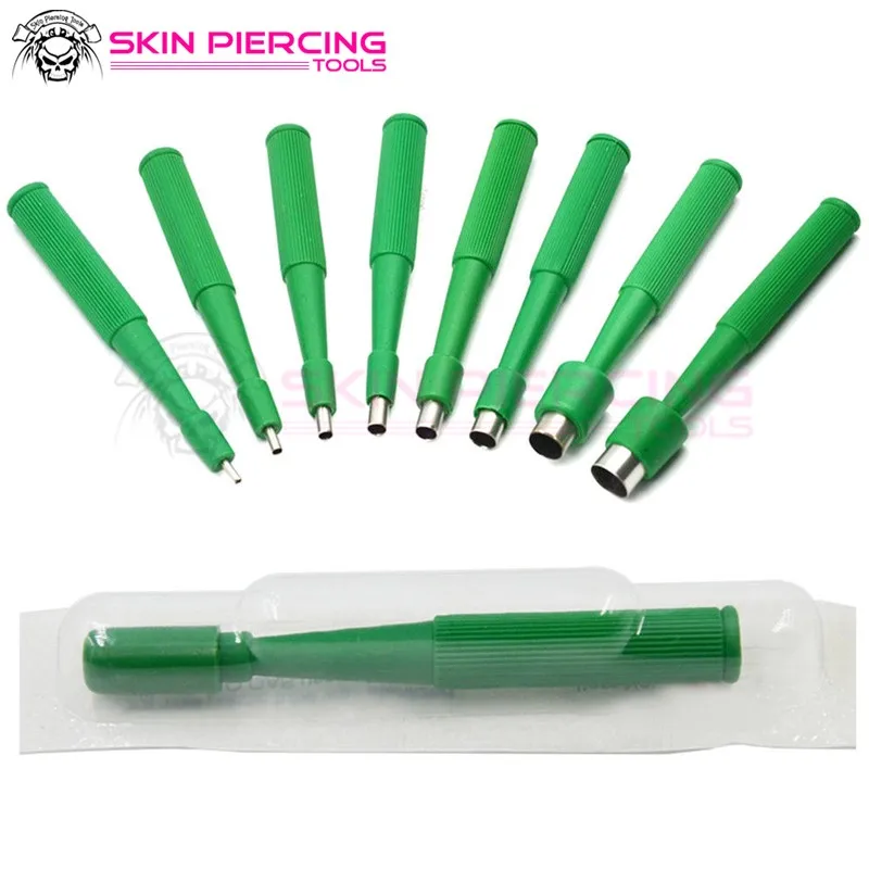 These devices, constructed from 403L stainless steel, consist of extremely sharp cutting edges. The punch has the capability to quickly cut, retrieve and store different types of tissue samples. One of the most important features of this device is that they are sterile and disposable. This allows the user to perform the biopsy effortlessly, and not worry about contamination before or after use. At Skin Piercing, we provide various biopsy punch sizes. These can range from 0.30 mm to 10 mm. We also offer the punches in a variety of colors. These can include white, green, yellow, orange, fluorescent, and celadon.