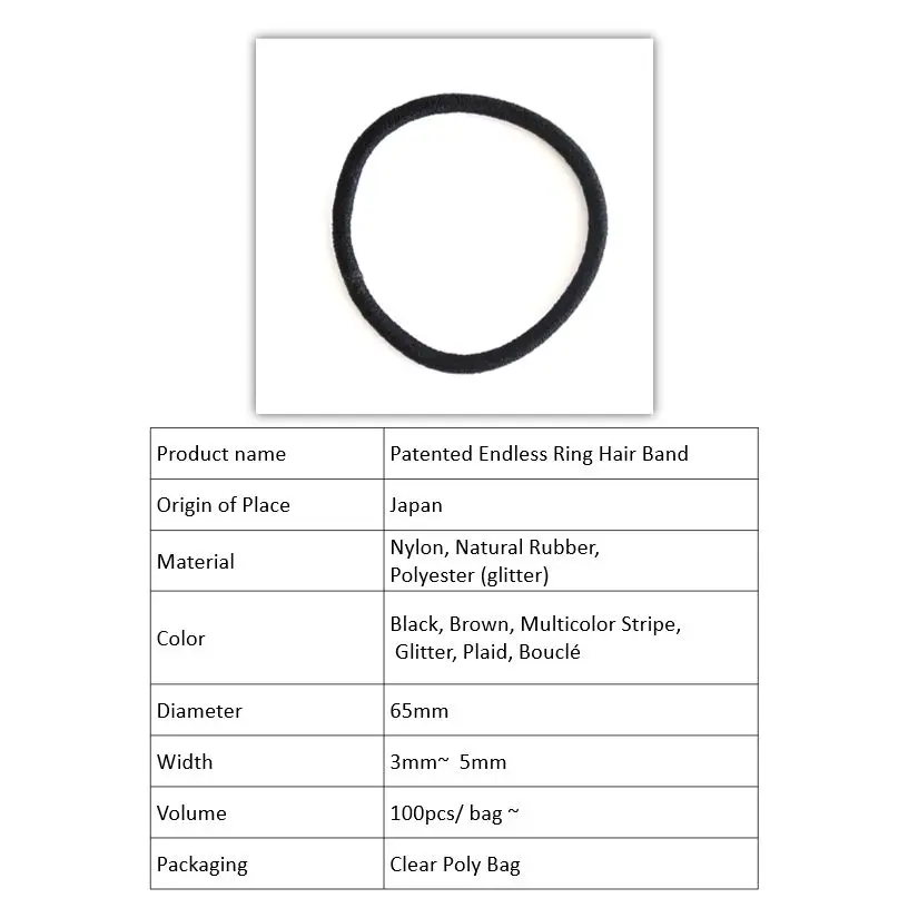 Patented endless ring hair band designed with no joints.