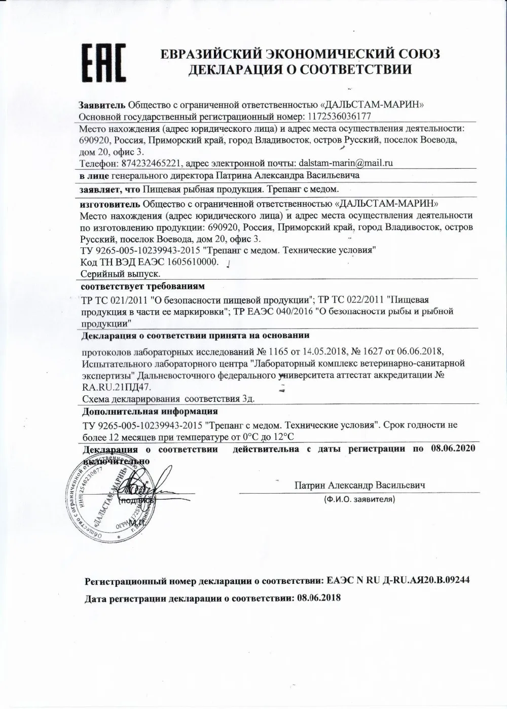 -Trapang with honey - Dried trepang - Trapang boiled-frozen -Mussels Pacific boiled-frozen in a shell -Music Pacific boiled-frozen on one leaf - Gray's mussels cooked and frozen on one shutter - Scallop freshly frozen on one leaf - Freshly frozen oyster