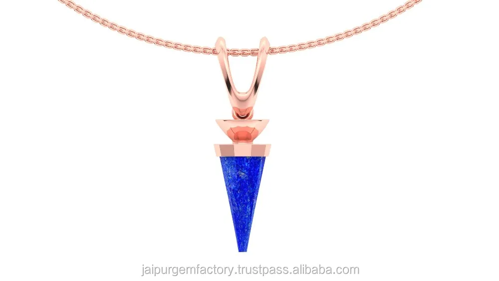 Lapis Spike Shape Rhodium Plated Pendant