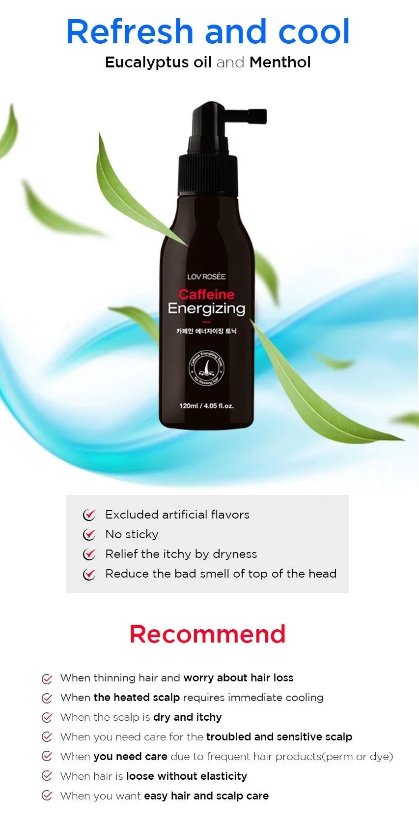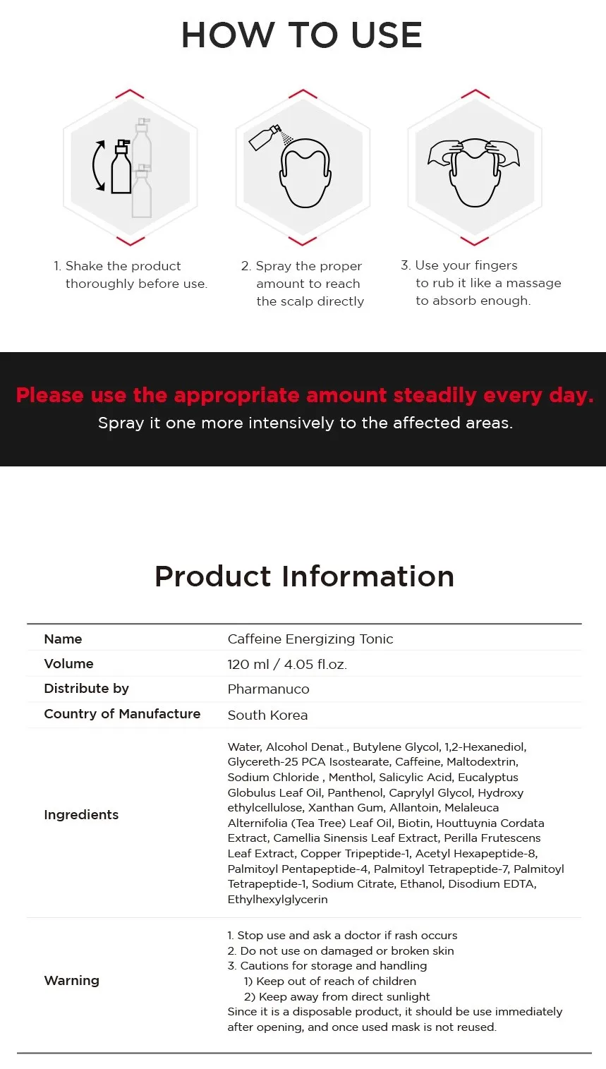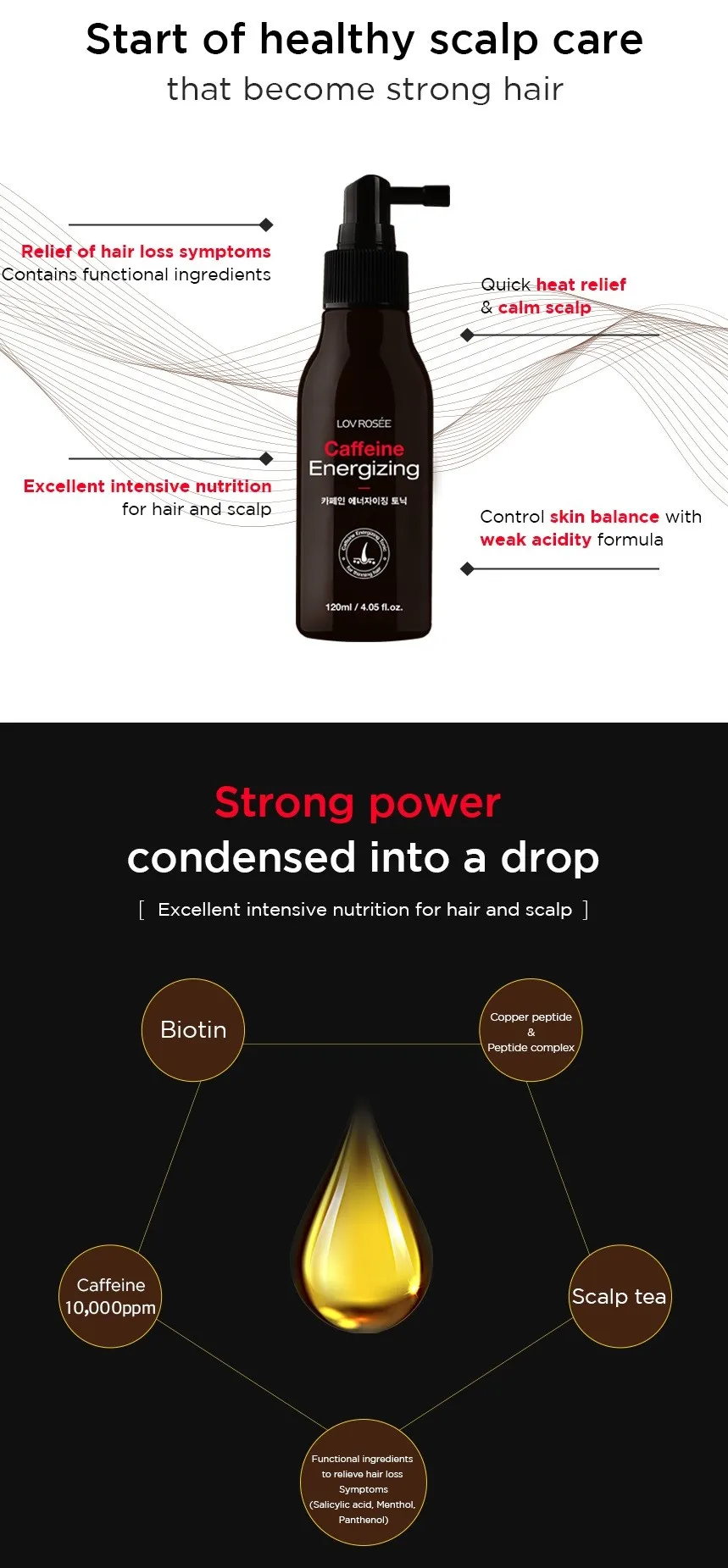 Caffeine Energizing Hair Tonic enhances scalp vitality and optimizes scalp functions for hair loss alleviation.