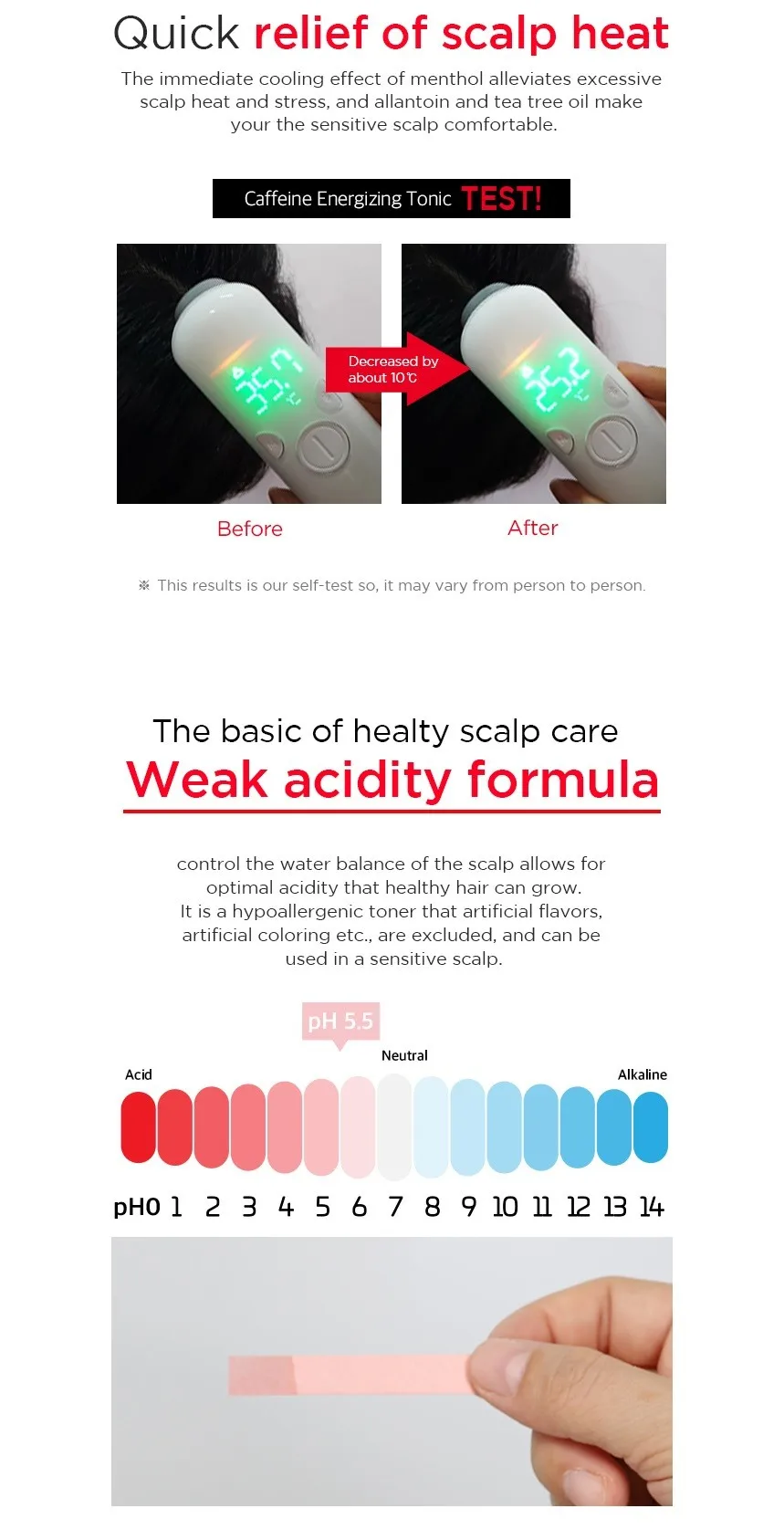 ‒The immediate cooling effect of menthol alleviates excessive scalp heat and stress, and allantoinand tea tree oil make your the sensitive scalp comfortable.