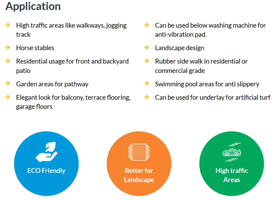 Rubber Tiles are extremely popular choice for commercial gyms, children play area, swimming pool area, horse stables, residential segments for rubber pavers and many more application where safety required the most.