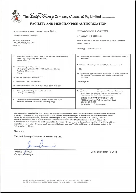 Disney authorized