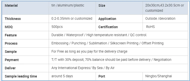 Our manufacture was established in 1995, located in the Wenzhou city, Zhejiang Province with 4000 square meters factory .We are professional manufacturer supplying paper straws, license plate, license plate frame, car emblem, metal sign, fridge,Keychain,magnet etc. Up to now, we have obtained following certificates,:IATF 16949, which makes us serve customers from all over the world.